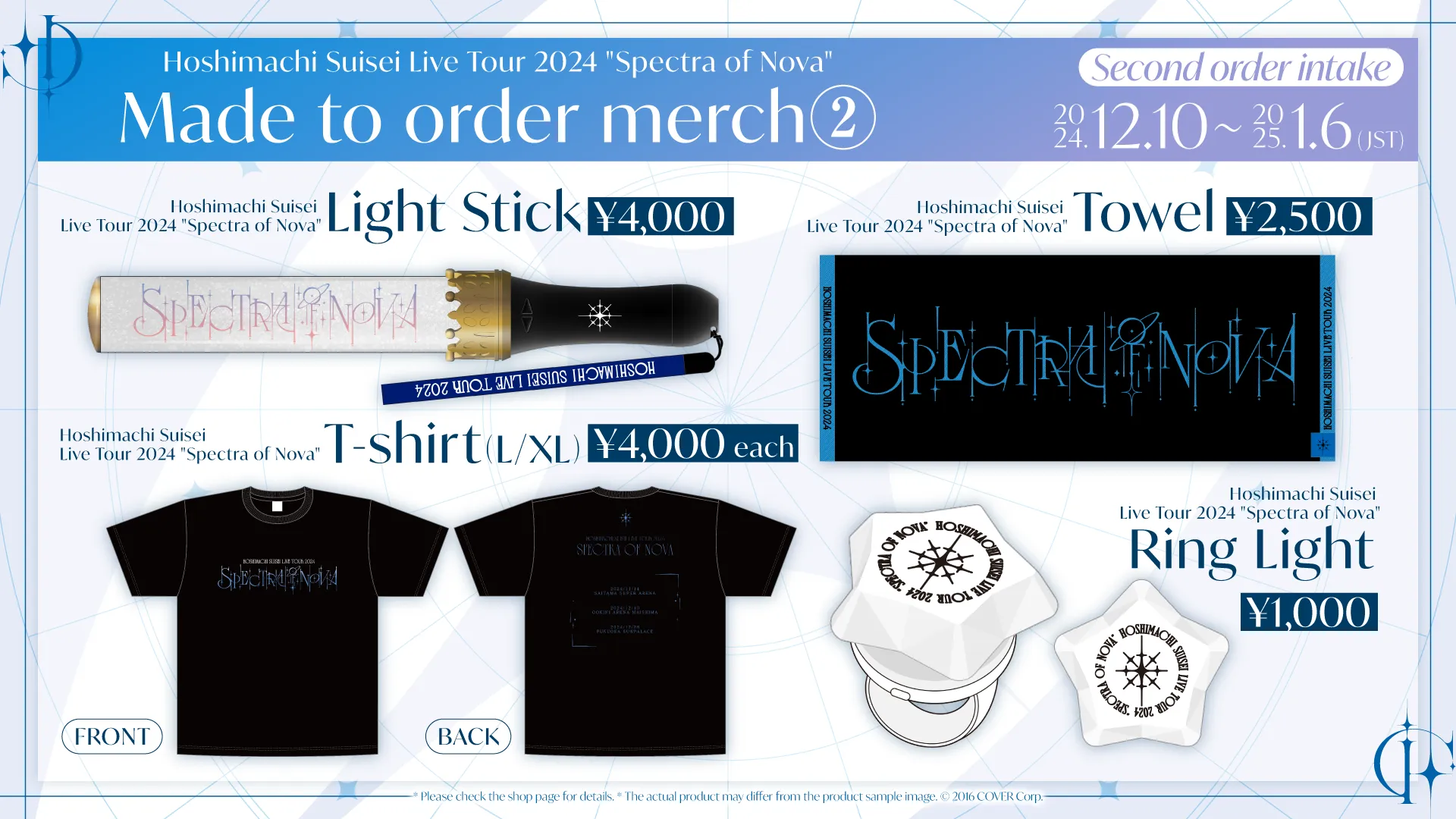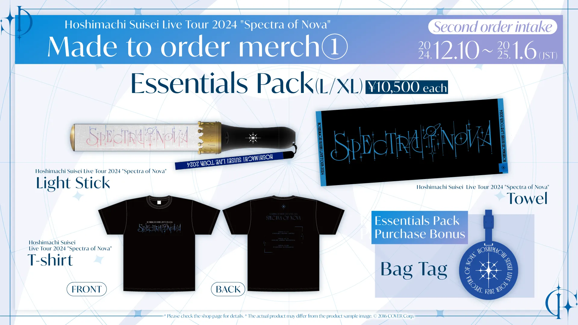 COVER Corporation and its vendors will not be held responsible in the event that you do not receive your items prior to the date of the concert. In such cases, orders cannot be canceled or refunded.